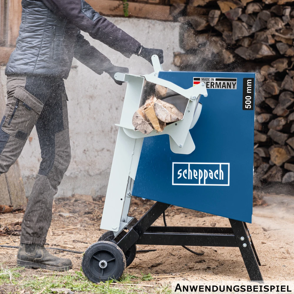 Die Scheppach Wippkreissäge HS520 mit 2600 Watt ist ein leistungsstarkes und robustes Gerät, das sich hervorragend zum schnellen und sicheren Zusägen von Brennholz eignet. Mit ihrem stabilen Stahlrahmen und einem kraftvollen Motor ist sie in der Lage, auch größere Holzstücke zu verarbeiten. Das große 500 mm Sägeblatt ermöglicht das Schneiden von Holz mit einem Durchmesser bis maximal 170 mm und einer Länge von 200 bis 1200 mm – auch mehrere Holzscheite gleichzeitig. Durch die patentierte Schutzklappe wird der Benutzer zuverlässig vor Holzsplittern sowie vor dem ungewollten Griff ins Sägeblatt geschützt. Der mechanische Verriegelungsmechanismus sorgt dafür, dass die Wippe nur dann in Bewegung gesetzt werden kann, wenn die Schutzklappe vollständig geschlossen ist, was höchste Sicherheitsstandards erfüllt. Das ergonomische Design mit komfortabler Arbeitshöhe erleichtern das Handling während Kerben in der Wippe ein Durchrutschen von Rundmaterial verhindern. Zudem ermöglichen zwei robuste Laufräder den mühelosen Transport zum jeweiligen Arbeitsort. Mit einer Drehzahl von 2800 min⁻¹ ist diese Scheppach Wippkreissäge ein zuverlässiger Partner für alle Holzarbeiten. Der Betrieb erfolgt über eine herkömmliche 230 Volt Steckdose, was die Handhabung zusätzlich vereinfacht. Ideal für den Einsatz in Werkstätten oder im Außenbereich.